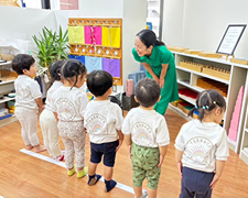 グローリッジキッズスクールに通い、モンテッソーリレッスンを受けます。(2歳~)モンテッソーリ教育は、子どもたちが自主的に活動を選び、主体的に学ぶことを重視しています。教室内には興味を引く多様な教具が揃っており、子どもたちは自分のペースで学びを深めます。教師は観察とサポートを行い、子どもたちが自分で問題解決をする力を育てます。異年齢の子どもたちが共に学ぶことで、協力や責任感を自然に身につけることができます。